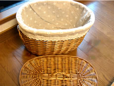 どこかなつかしさを感じるとってもかわいいバスケットです。ふたがついているので、とっても便利にご利用頂けます。